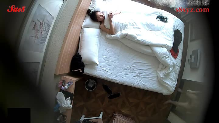 酒店监控偷拍丸子头学姐和眼睛哥哥开房仔细端详鸡鸡